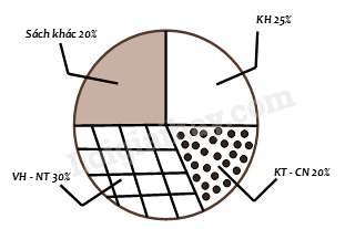 Vì tổng tỉ lệ các loại sách là 100%, mà tổng số phần trăm trong biểu đồ trên là 30% + 20% + 25% + 20% = 95% < 100%.