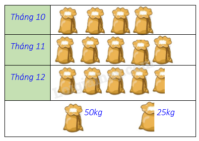 Biểu đồ tranh ở hình bên thống kê số gạo bán của một cửa hàng trong ba tháng cuối năm 2020.