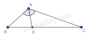 Ta có AD là tia phân giác của tam giác ABC nên \(\frac{{BD}}{{CD}} = \frac{{AB}}{{AC}} = \frac{{AB}}{{2AB}} = \frac{1}{2}\) (tính chất của tia phân giác trong tam giác).