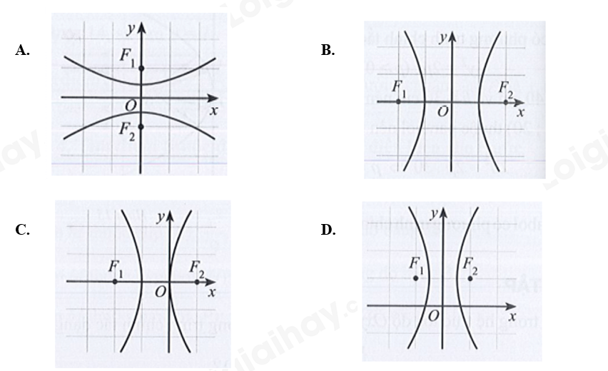 Dựa vào dáng điệu của hypebol \(\left( H \right):\frac{{{x^2}}}{{{a^2}}} - \frac{{{y^2}}}{{{b^2}}} = 1\)