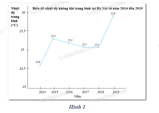 Trung bình cộng \(\overline X = \frac{{24,6 + 25,1.2 + 25,2 + 25,3 + 25,9}}{6} = 25,2\)