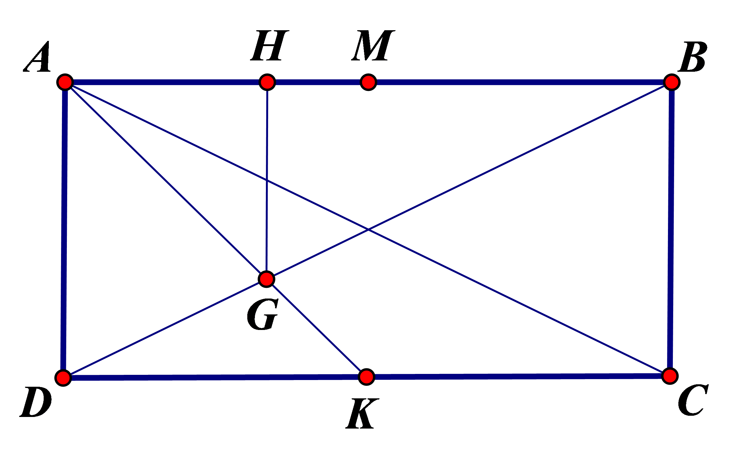 Gọi \(H\) là hình chiếu vuông góc của \(G\) lên \(AB\) và \(K\) là trung điểm đoạn \(CD.\)