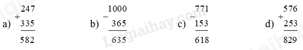 - Cộng hoặc trừ các chữ số thẳng cột lần lượt từ phải sang trái