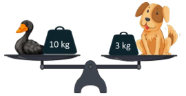 Con chó cân nặng hơn con vịt là 10 – 3 = 7 (kg)