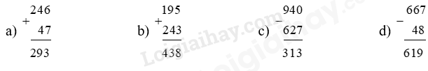 - Cộng hoặc trừ các chữ số cùng hàng lần lượt từ phải sang trái.