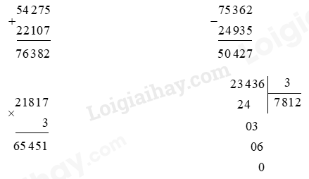 - Đặt tính theo quy tắc đã học