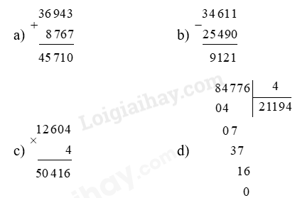 - Với phép cộng, phép trừ: Cộng hoặc trừ các chữ số thẳng cột lần lượt từ phải sang trái