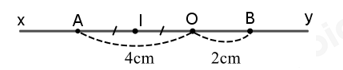 Điểm O nằm giữa I và B, \(OI = OB = 2cm\) nên O là trung điểm của đoạn thẳng IB.