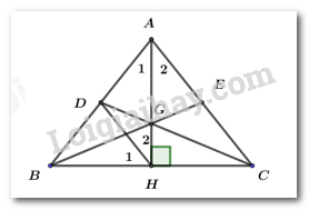 d) Ta có: \(DC,BE,AH\) lần lượt là đường trung tuyến ứng với các cạnh \(AB;AC;BC\)