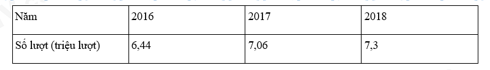 Câu 5. Cho bảng thống kê số lượt khách du lịch (ước đạt) đến Ninh Bình trong các năm 2016, 2017, 2018.