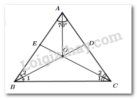 Câu 3. Cho \(\Delta ABC,{\mkern 1mu} \hat A = {70^\circ }\), hai đường phân giác BD và CE cắt nhau tại \(O\), thế thì: