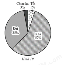 Kết quả học tập Học kì I của học sinh lớp 7A được đánh giá ở bốn mức: Tốt, Khá, Đạt, Chưa đạt. Biểu đồ hình quạt tròn ở Hình 19 biểu diễn kết quả học tập Học kì I (tỉnh theo tỉ số phần trăm) của học sinh lớp 7A theo bốn mức trên