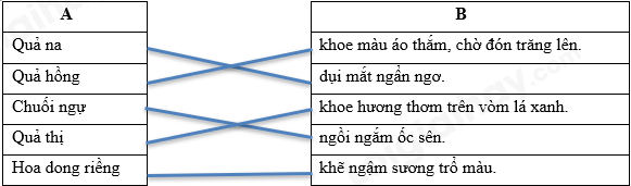 Câu 3. Nối từ ngữ ở cột A với từ ngữ ở cột B để tạo thành câu hoàn chỉnh.