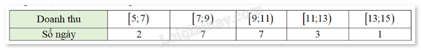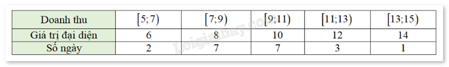 Doanh thu bán hàng trong 20 ngày được lựa chọn ngẫu nhiên của một cửa hàng được ghi lại ở bảng sau (đơn vị: triệu đồng).