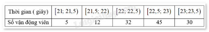 Gọi \({x_1};{x_2};...;{x_{124}}\) là thời gian chạy của 124 vận động viên tham gia hội thao và giả sử dãy này được sắp xếp theo thứ tự tăng dần.