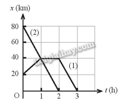+ Trong khoảng thời gian từ 0 đến 2h, xe chuyển động đều theo chiều âm với tốc độ \(v = \frac{{\Delta x}}{{\Delta t}} = \frac{{80 - 0}}{{2 - 0}} = 40km/h\)