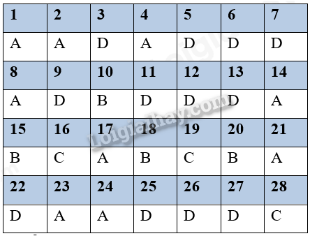 Đối chiếu với các đáp án thì đáp án C là chính xác