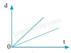 Đồ thị trên có 2 đường biểu diễn độ dịch chuyển – thời gian của chuyển động thẳng khác nhau, đường nào có độ dốc lớn hơn, thì có tốc độ lớn hơn.