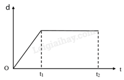 Trong khoảng thời gian từ O đến t1 đường biểu diễn là đường thẳng xiên góc, độ dịch chuyển tăng đều, khi đó tốc độ của xe không đổi.