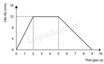 C – Trong 4 s cuối, gia tốc của xe là: \(a = \frac{{\Delta v}}{{\Delta t}} = \frac{{0 - 12}}{{9 - 5}} = - 3m/{s^2}\)