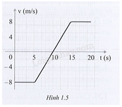 Đồ thị vận tốc – thời gian của một vật chuyển động dọc theo trục x được thể hiện trong hình 1.5. Xác định gia tốc trung bình của vật trong các khoảng thời gian: a. t = 5,00 s đến t = 15,0 s. b. t = 0 đến t = 20,0 s. |
