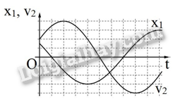 Câu 10: Hai vật M1 và M2 dao động điều hòa cùng tần số. Hình bên là đồ thị biểu diễn sự phụ thuộc của li độ x1 của M1 và vận tốc v2 của M2 theo thời gian t . Hai dao động của M2 và M1 lệch pha nhau: