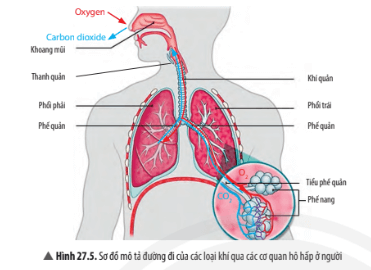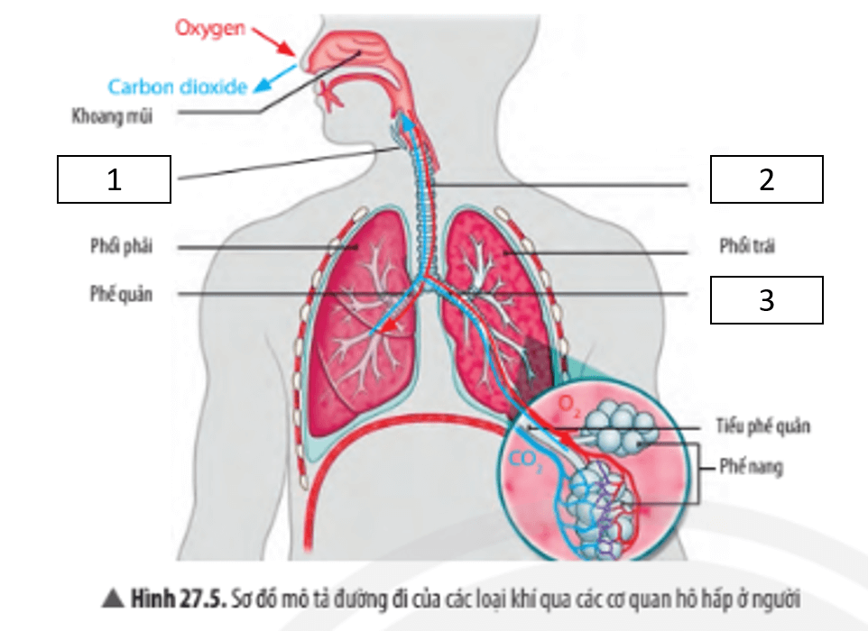 Cho hình ảnh mô tả đường đi của các loại khí qua các cơ quan hô hấp ở người sau: