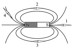 Hình dưới đây cho biết một số đường sức từ của nam châm thẳng. Vị trí nào dưới đây vẽ đúng hướng của kim nam châm?