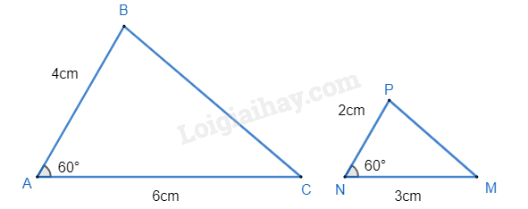 Cho \(\Delta ABC\) có \(\widehat A = {60^0},AB = 4cm,AC = 6cm\); \(\Delta MNP\) có \(\widehat N = {60^0},MN = 3cm,NP = 2cm\). Cách viết nào sau đây đúng?