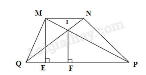 Cho hình thang MNPQ (MN // PQ), đường cao ME. Hình thang MNPQ có diện tích 36cm, MN = 4cm, PQ = 8cm. Gọi I là giao điểm của hai đường chéo MP và NQ.