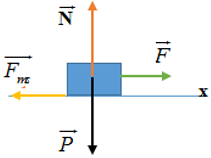 Theo định luật II Newton có: \(\vec F + \overrightarrow {{F_{ms}}} + \vec N + \vec P = m\vec a\)