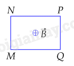 Một khung dây dẫn kín \({\rm{MNPQ }}\)đặt cố định trong từ trường đều. Hướng của từ trường \(\overrightarrow B \) vuông góc với mặt phẳng khung dây như hình bên. Biết vector pháp tuyến n của mặt phẳng khung dây cùng chiều \(\overrightarrow B \). Khi từ thông qua diện tích khung dây tăng dần đều theo thời gian thì trong khung
