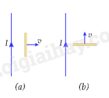 Như hình vẽ (a) và (b) lần lượt là hai trường hợp đoạn dây dẫn trong một mạch kín chuyển động trong từ trường của một dây dẫn thẳng dài mang dòng điện I tạo ra. Chiều của dòng điện cảm ứng trong đoạn dây dẫn trong trường hợp (a) và (b) tương ứng là