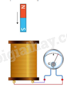 Nối hai đầu cuộn dây dẫn kín với điện kế. Thả rơi tự do một thanh nam châm thẳng xuyên qua vòng dây. Biết khi bắt đầu chuyển động kim điện kế chỉ vạch số 0