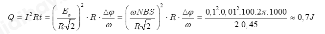 Một vòng dây có diện tích S = 100 cm2 và điện trở R = 0,45 Ω, quay đều với tốc độ góc 100 rad/s trong một từ trường đều có cảm ứng từ B = 0,1 T xung quanh một trục nằm trong mặt phẳng vòng dây và vuông góc với các đường sức từ. Nhiệt lượng tỏa ra trong vòng dây khi có nó quay được 1000 vòng bằng bao nhiêu J (làm tròn kết quả đến chữ số thập phân thứ nhất)?
