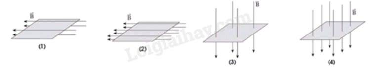 Hình vẽ nào dưới đây, từ thông gửi qua diện tích của khung dây dẫn có giá trị lớn nhất?
