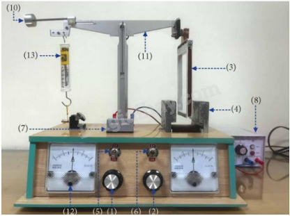 Trong giờ thực hành đo độ lớn cảm ứng từ bằng “cân dòng điện”, với việc bố trí thí nghiệm được thể hiện như trong hình, một học sinh thu được bảng số liệu dưới đây.