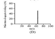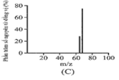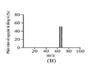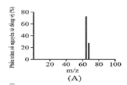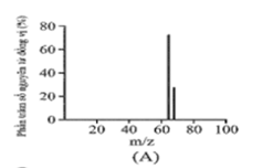 Đồng có hai đồng vị bền trong tự nhiên là và . Nguyên tử khối trung bình của đồng là 63,55 (điện tích Z của các ion đồng vị đồng đều bằng 1+). Hình vẽ phổ khối nào dưới đây là đúng?