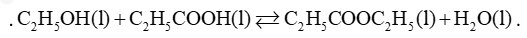 Câu 1: Ethanol và propanoic acid phản ứng với nhau tạo thành ethy propanoate theo phản ứng hóa học sau: \({C_2}{H_5}OH(l) + {C_2}{H_5}COOH(l) \mathbin{\lower.3ex\hbox{$\buildrel\textstyle\rightarrow\over{\smash{\leftarrow}\vphantom{_{\vbox to.5ex{\vss}}}}$}} {C_2}{H_5}COO{C_2}{H_5}(l) + {H_2}O(l)\)