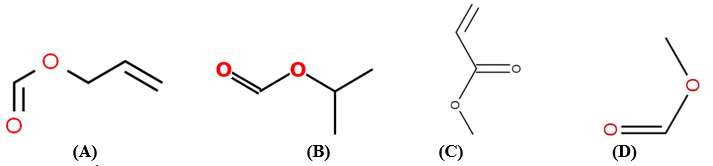 Allyl formate ; Isopropyl methanoate ; Methyl arcylate ; Methyl methanoate