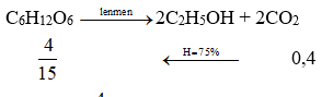 Lên men m gam glucose với hiệu suất 75%. Toàn bộ CO2 thoát ra được dẫn vào dung dịch nước vôi trong dư, thu được 40 gam kết tủa. Giá trị của m là: