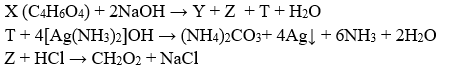 X (C4H6O4) + 2NaOH \( \to \)CH3COONa (Y) + HCOONa (Z) + HCHO (T) + H2O