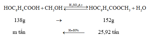 mmethyl salicylate = 1.106.12.2,16 = 25 920 000 gam = 25,92 tấn.