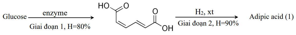 (d) Lượng adipic acid được tạo từ 225 kg glucose theo sơ đồ (1) có thể sản xuất được 179 kg chỉ nha khoa. Biết rằng chỉ nha khoa chứa 92% về khối lượng poly (hexamethylene adipamide).