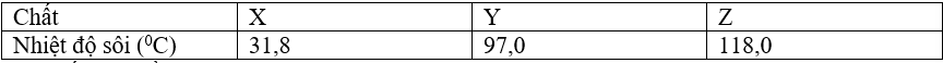 X, Y, Z là 3 chất hữu cơ đươc kí hiệu ngẫu nhiên trong số các chất HCOOCH3, CH3COOH và CH3CH2CH2OH. Nhiệt độ sôi của X, Y, Z được cho trong bảng sau: