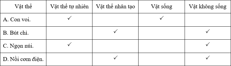 A. Con voi. B. Bút chì. C. Ngọn núi. D. Nồi cơm điện.