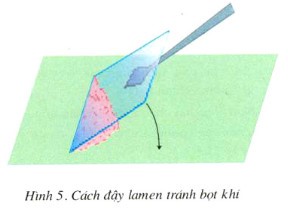 Cách đặt lamen đúng là đặt 1 cạnh lamen vào giọt nước sau đó hạ dần lamen xuống.