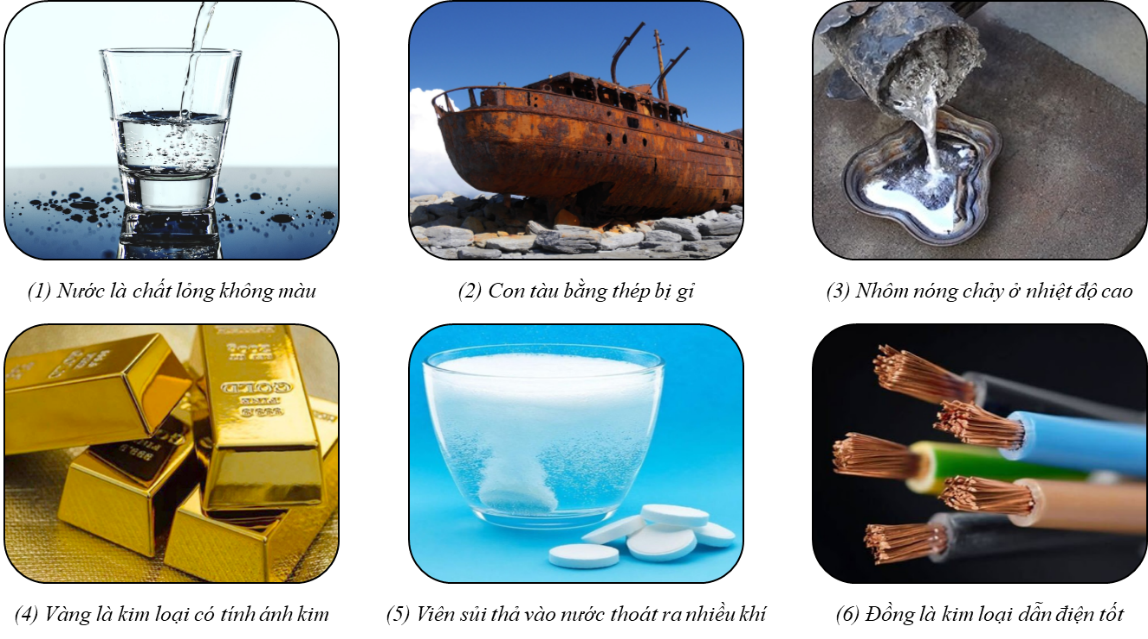 - Tính chất vật lí: (1), (3), (4), (6).