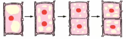 Ở tế bào thực vật có thành tế bào nên có sự hình thành vách ngăn, chia tế bào mẹ thành 2 tế bào con.