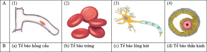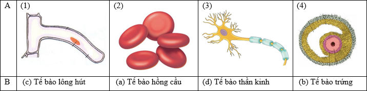 Câu 26: Nối các tế bào ở hàng A với tên tế bào ở hàng B sao cho phù hợp